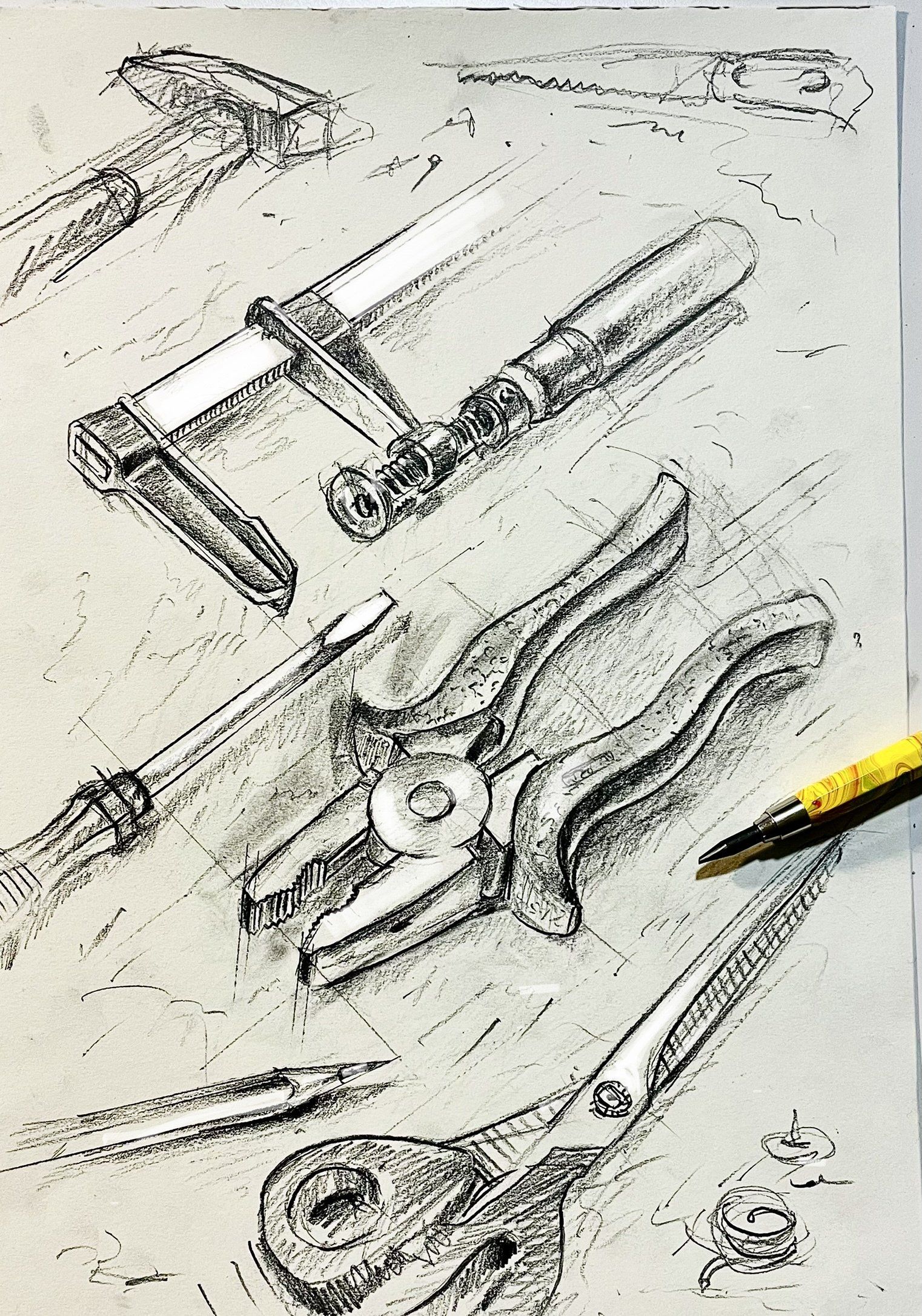 Werkzeuge: Augen, Hände, Bleistift, Kuli, Pinsel etc.